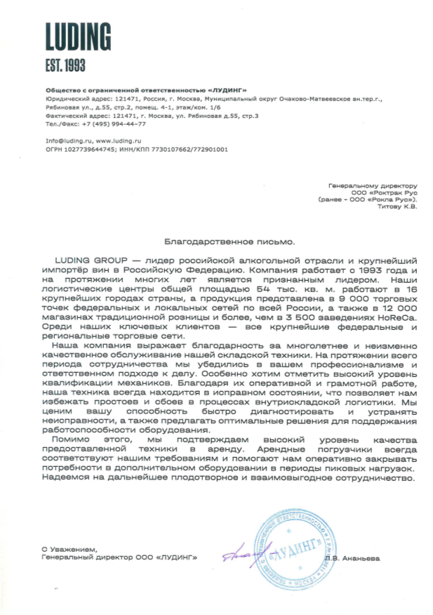 "Особенно хотим отметить высокий уровень квалификации механиков. Помимо этого, мы подтверждаем высокий уровень качества предоставляемой техники в аренду"